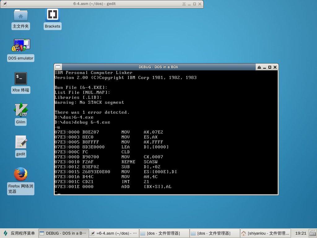 《汇编语言(第2版)》郑晓薇编著配套实验: DOS及DEBUG介绍 实验报告